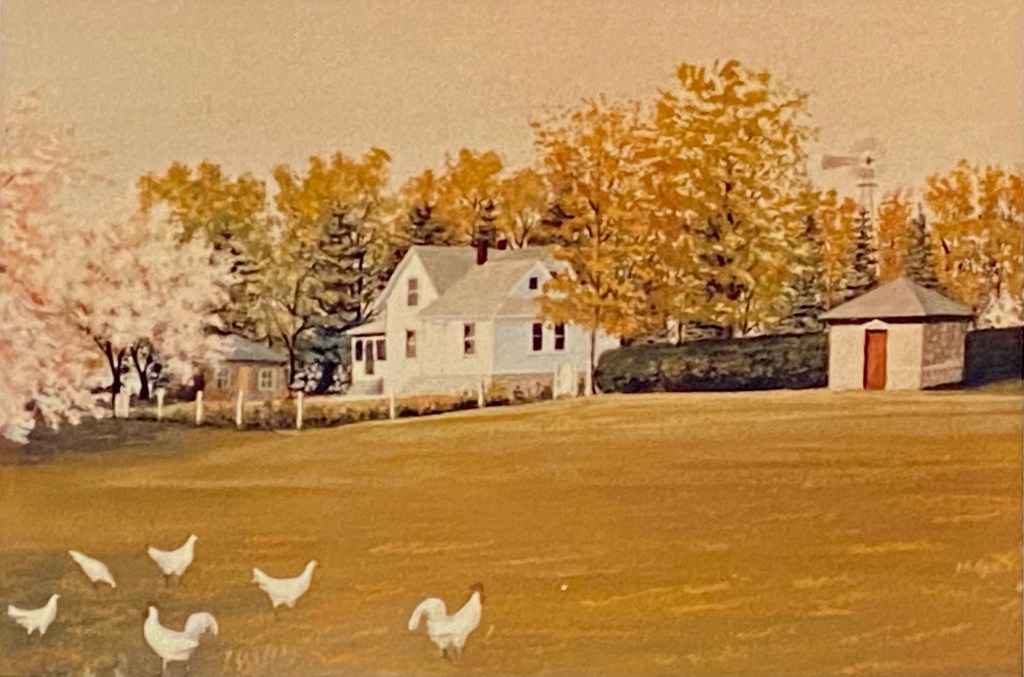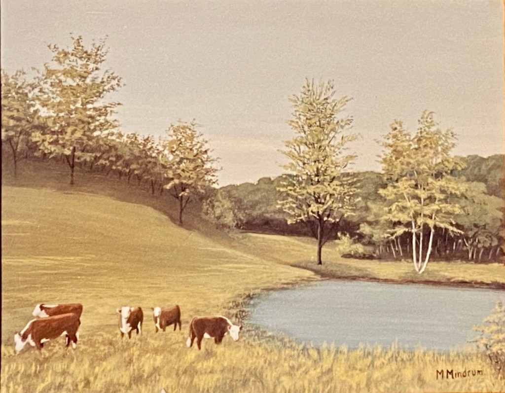 Margit’s landscape isn’t just trees. Animals inhabit Margit’s world too. It seems whitetail deer is the only wild animal to make Margit’s paintings. But of domesticated animals there are…
