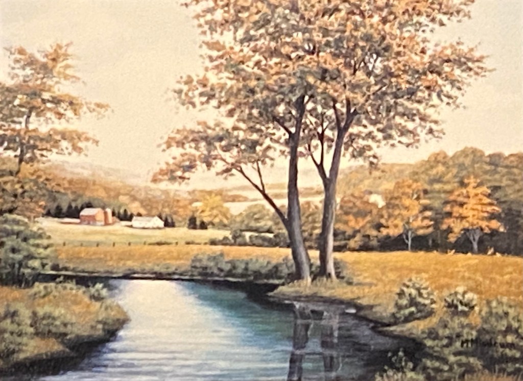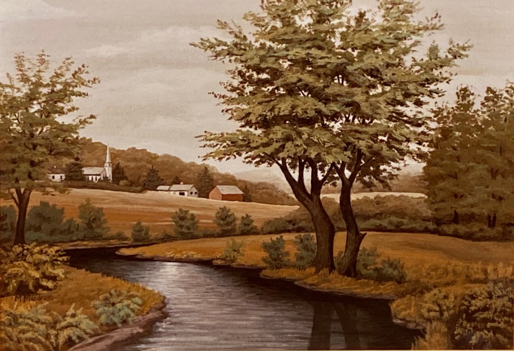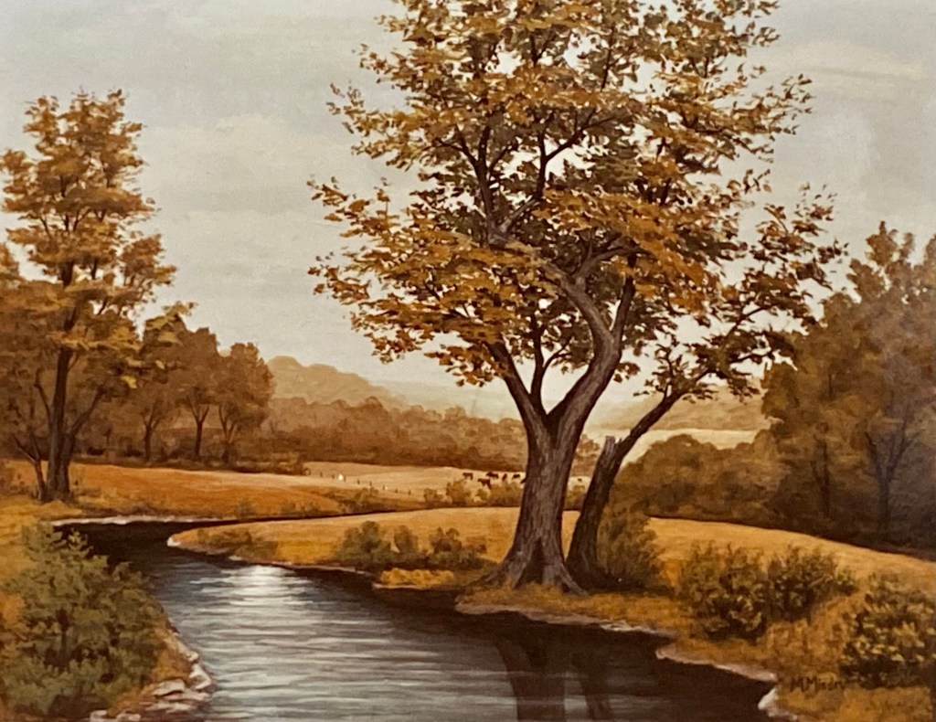 She and Palmer liked how the painting turned out so much that they hung it in their living room. She called it… “Summer stream & tree”.