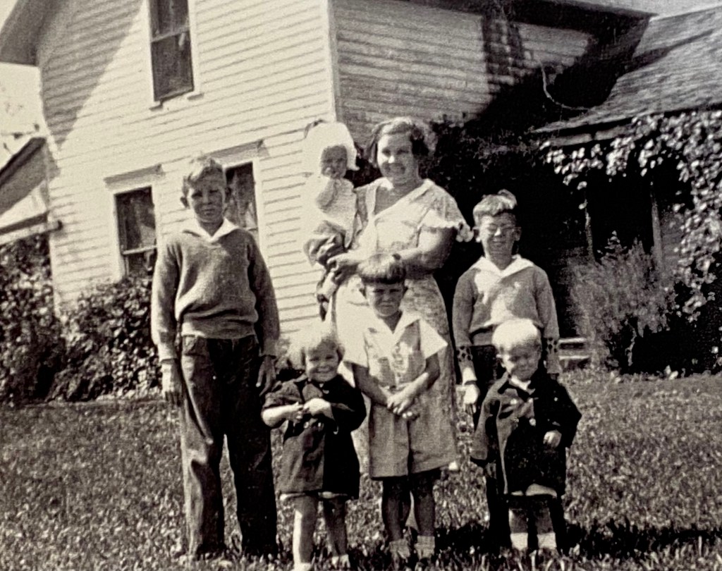 Margit and her six children at the Rorhella farmstead, near Bratsberg MN