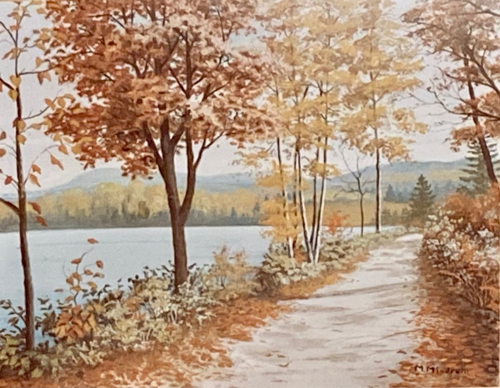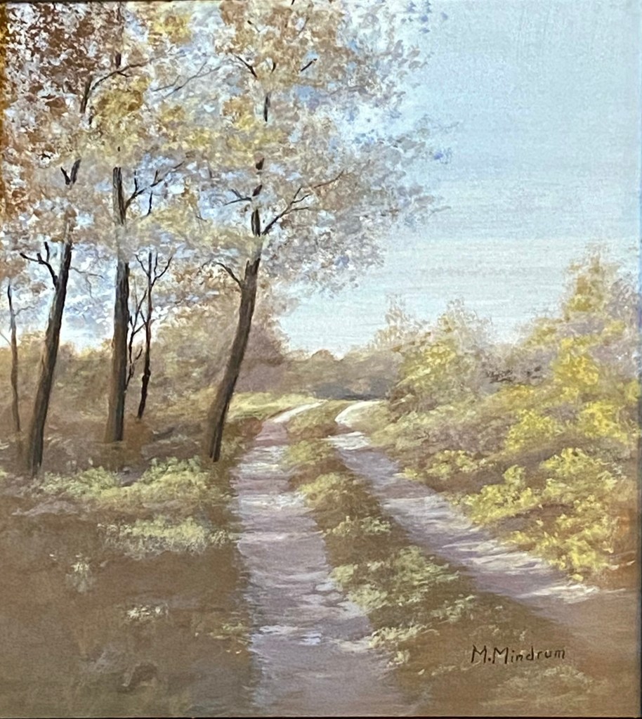 - Comment: Most of the roadways Margit painted were the small roads of her memories. But it’s unusual for Margit to go as small as a walking path. Even here, though, the shadows fall along the way.