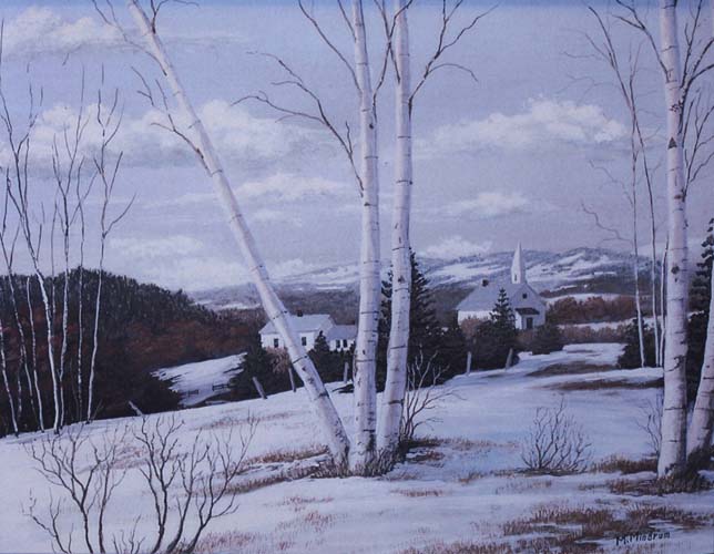 - Comment: The setting is more reminiscent of New England than SE Minnesota. The snow is so recent that the road in the foreground hasn’t been cleared yet, but the evergreens don’t retain the recent snowfall. Well, not everything needs to make sense in this dreamworld.
